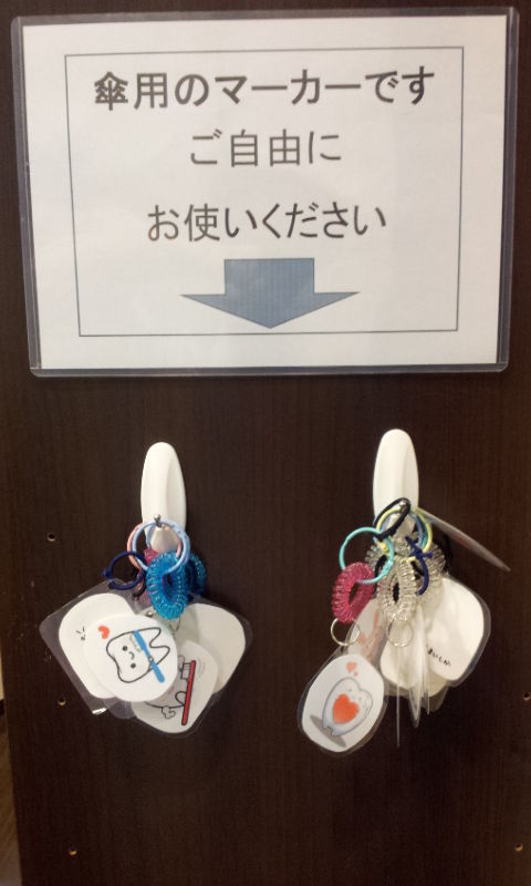 そのようにしていただくと、似ているビニール傘をお使いの患者様同士の取り違えや、傘をお忘れになってしまうこともないかと思います![]()