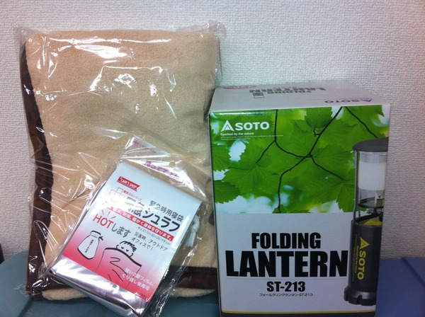 お水・非常食・毛布・寝袋・ランタンなどが常備されました。