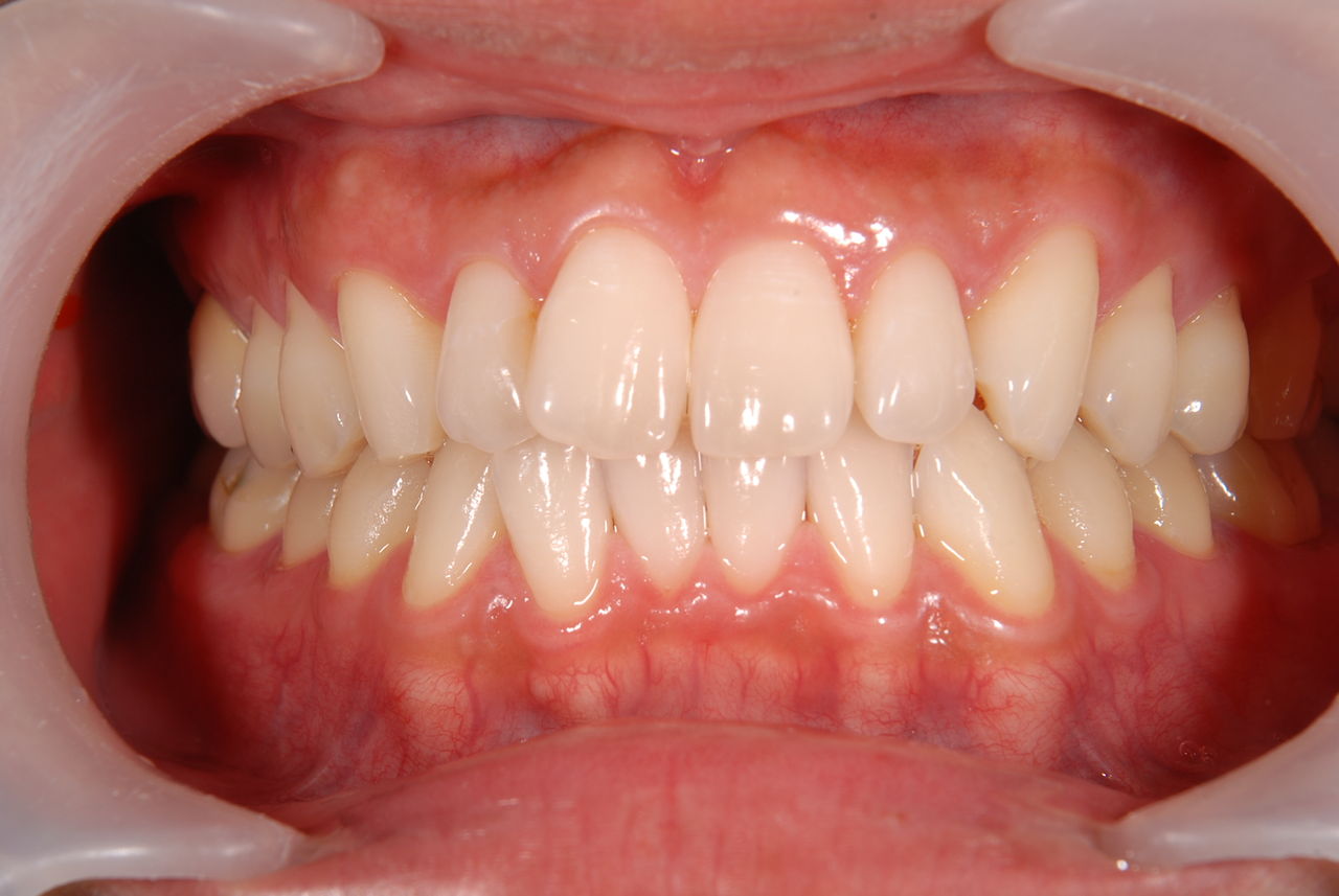 歯が白くなったことで、右の前歯の詰め物が黄色く目立つようになってきました。