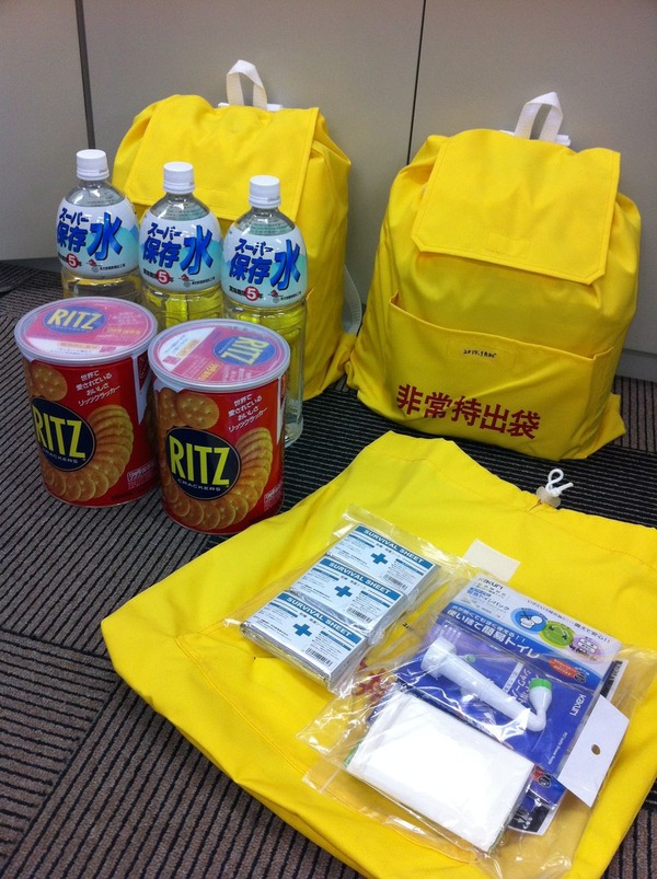 永研会では東日本大震災以来、各部署にお水や非常食などを常備することになりました。